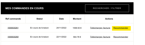 Oui, c’est possible. Il faut aller dans “mes commandes” puis cliquer sur le bouton « recommander » à côté de la commande sélectionnée.